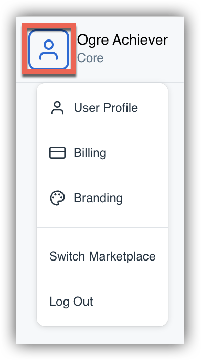 Clicking the icon in the top right corner of your marketplace (if you have a marketplace logo, this icon will be your logo) will bring up your Account Settings options. This is where you'll be able to manage your Account Settings and Billing information, as well as log out or switch marketplaces (if you have multiple marketplaces). For a deep dive into all of the features found within Account Settings we suggest reviewing this guide here.