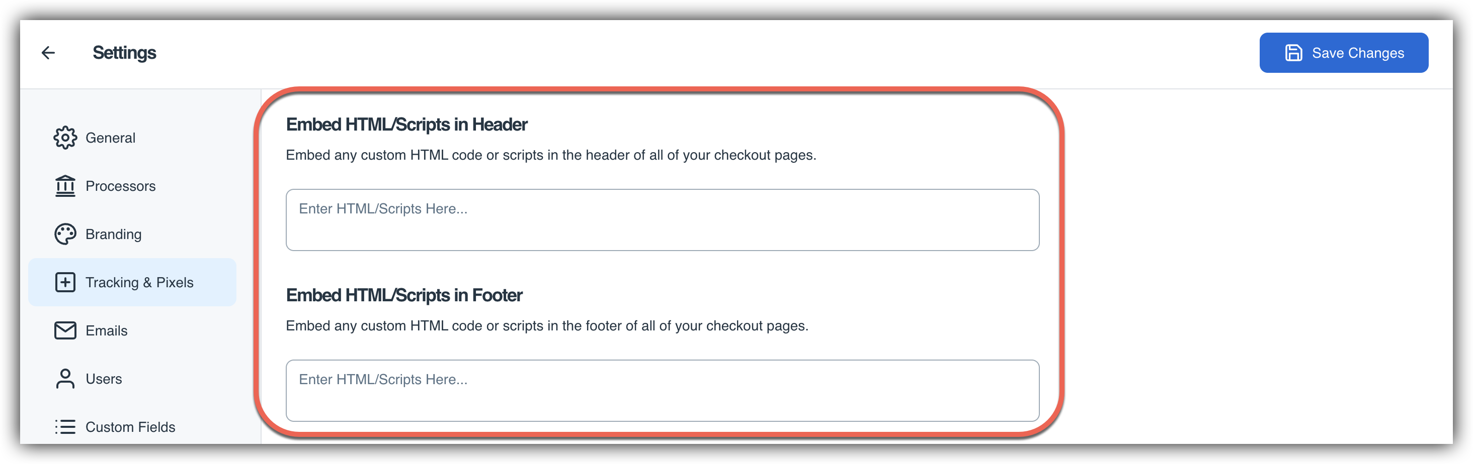 If you have your Google Analytics tracking script embedded in the header or footer of your SamCart pages, you should remove those scripts to avoid any duplicate information being sent to Google. There are two places to check for extra scripts you may have embedded on your checkouts...