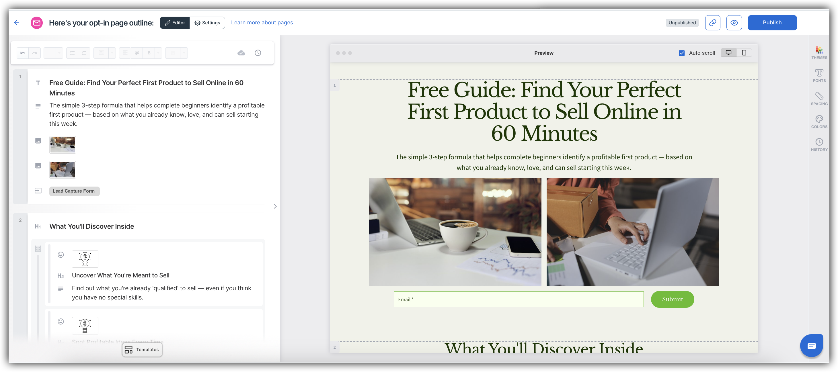 - Create an Opt-In Page: create a lead magnet page to grow your email list and subscribers.