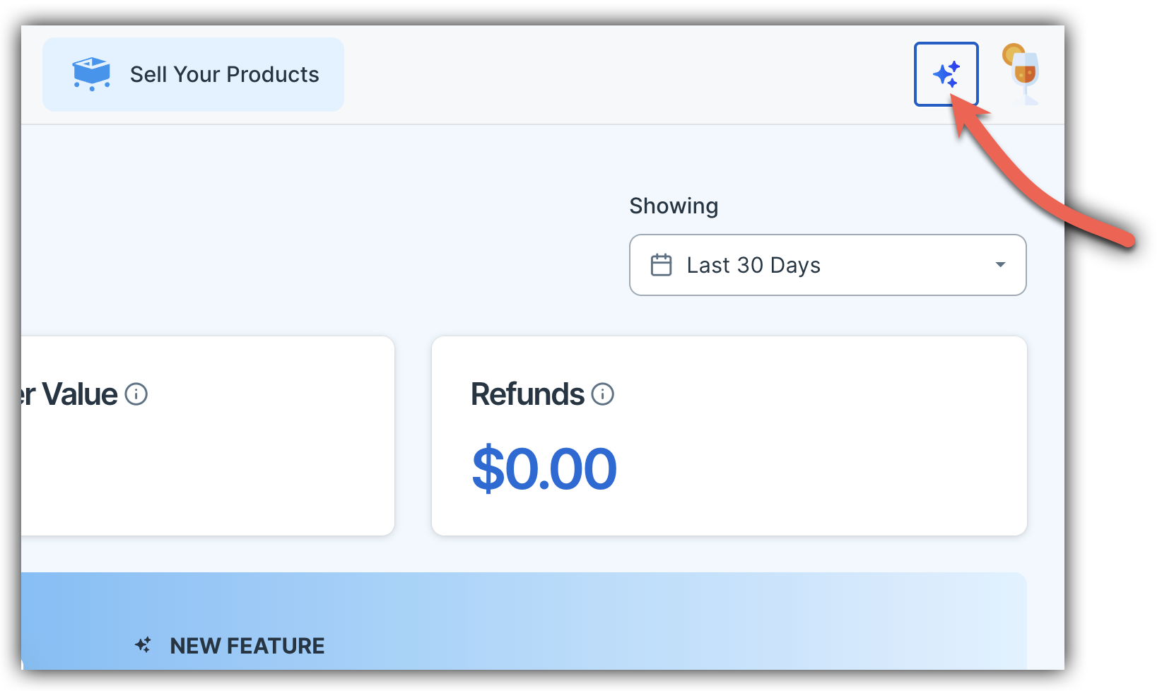 To try the CreatorAI Assistant - head to your Marketplace! Click on the Sparkle icon located in the top-right corner of your screen. It will be found right next to your business logo! This will open the AI Assistant panel where you can generate content directly within the platform.