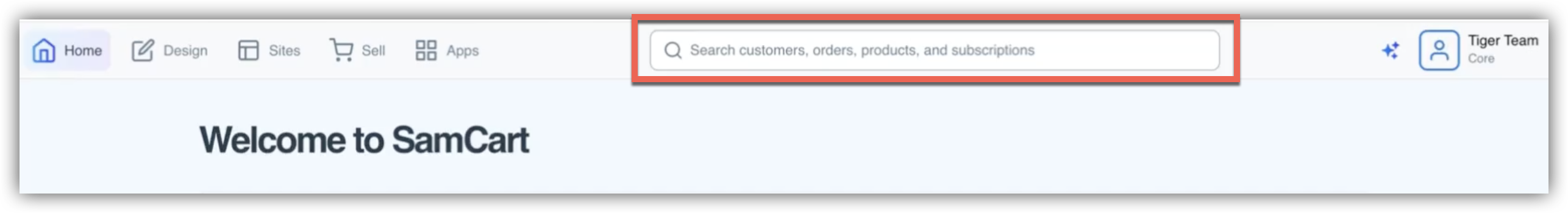 The last tool that we want to cover is our global marketplace search bar located at the top of the page. This allows you to quickly and easily search for any customer, order, subscription, product, Page, or support help article from directly within your marketplace with just a couple clicks.