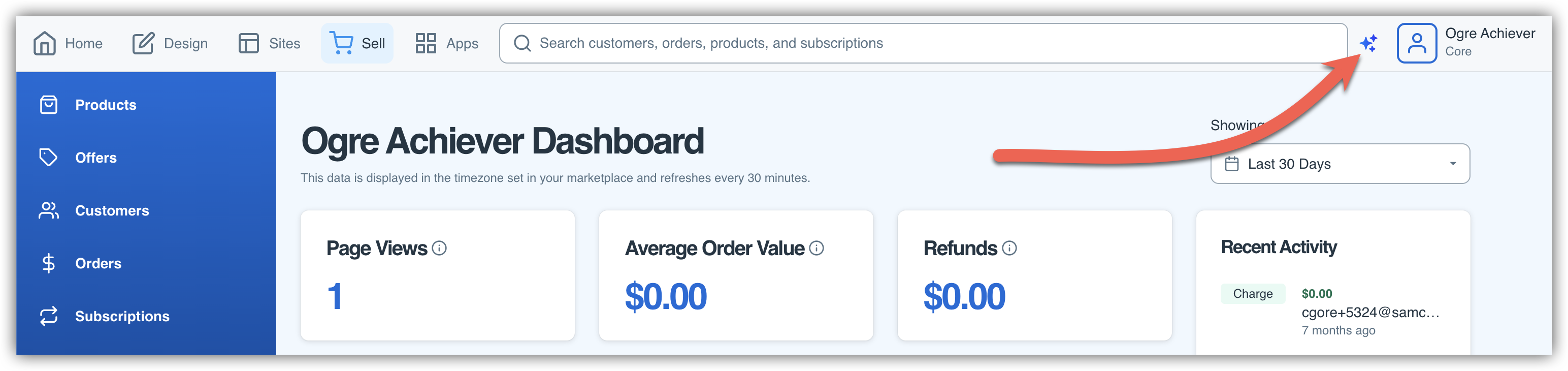 To access the AI Assistant, click on the sparkle icon in the top right corner of your dashboard