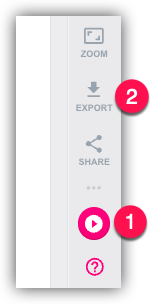 Before finalizing, preview your eBook by clicking the pink preview button (1) in the bottom right corner of the screen to ensure everything looks perfect. When you're satisfied, click Export (2) to download your completed eBook as a PDF file.