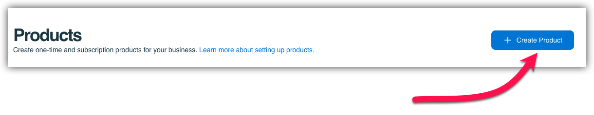 Once on the Products page, you'll see a list of your existing products (if any) and a button to create a new one. Click on Create Product.