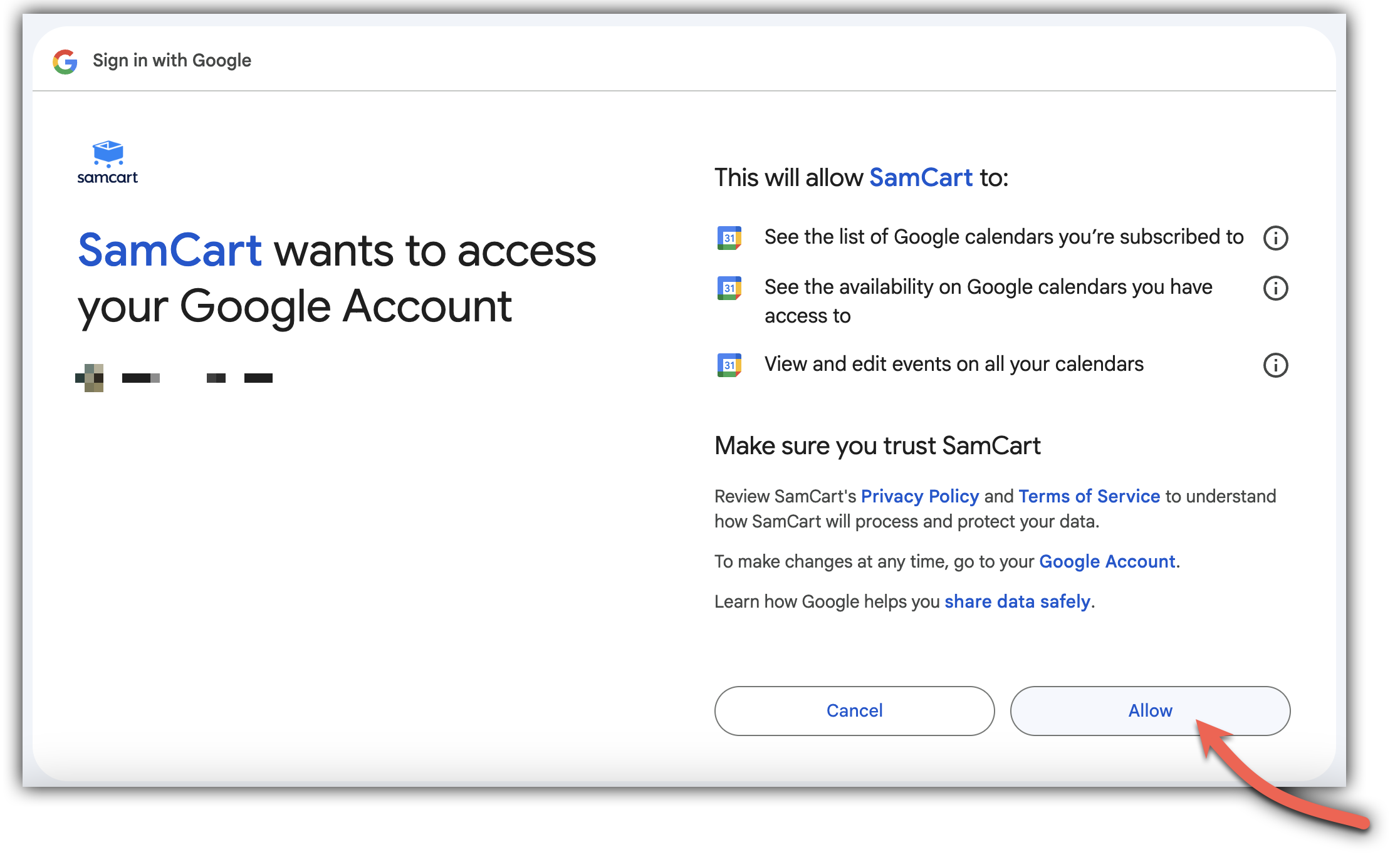 Before creating a bookable product, you'll need to connect your Google Calendar to SamCart.