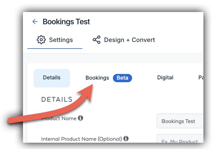 Once you have connected your Calendar - navigate to Products and create a new product or open an existing one you'd like to make bookable. We recommend using Digital Product as your product type.