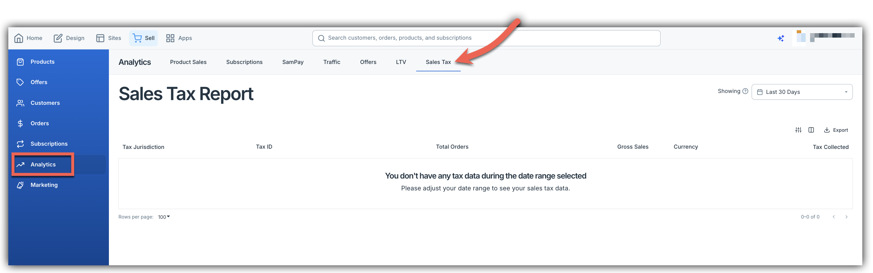 Navigate to Analytics > Sales Tax in your marketplace dashboard.