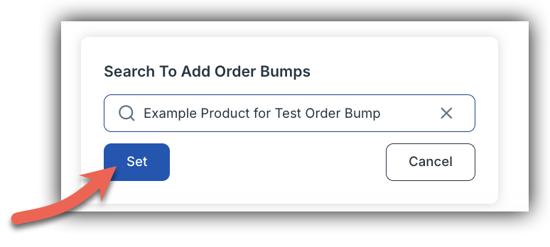 This will allow you to select from your existing global order bumps. Any bump you attach here will also appear in your central Offers > Order Bumps list. Once you choose your Order Bump - just click Set.