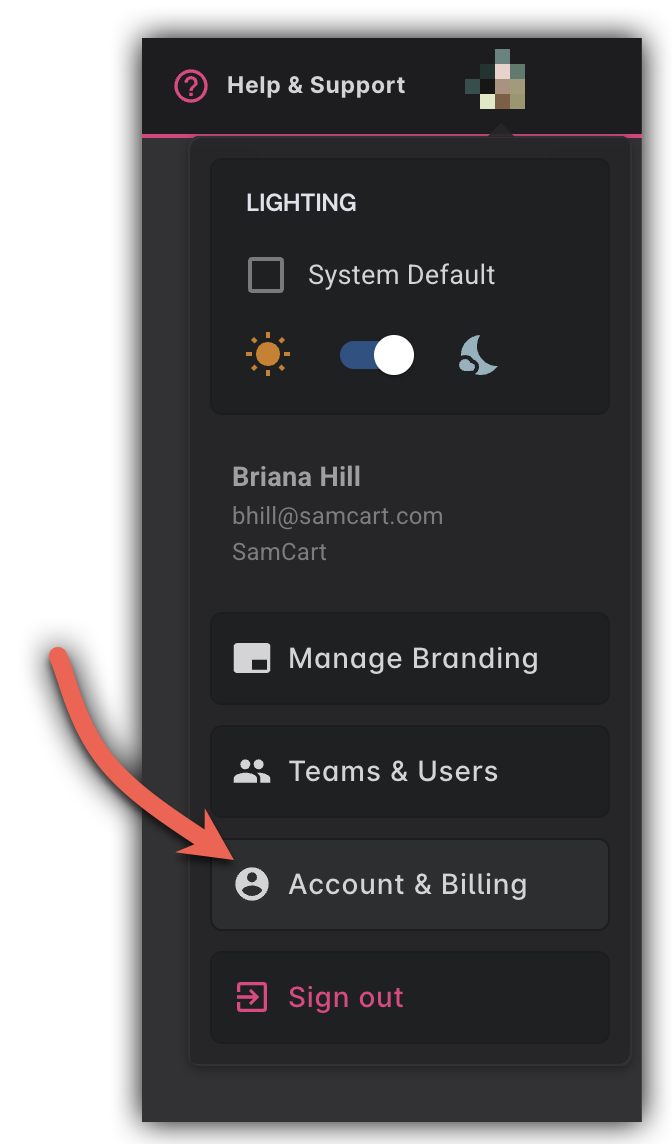 Navigate to your Account & Billing page by clicking on your profile icon in the top right corner and selecting Account & Billing from the dropdown once you click on your profile icon.